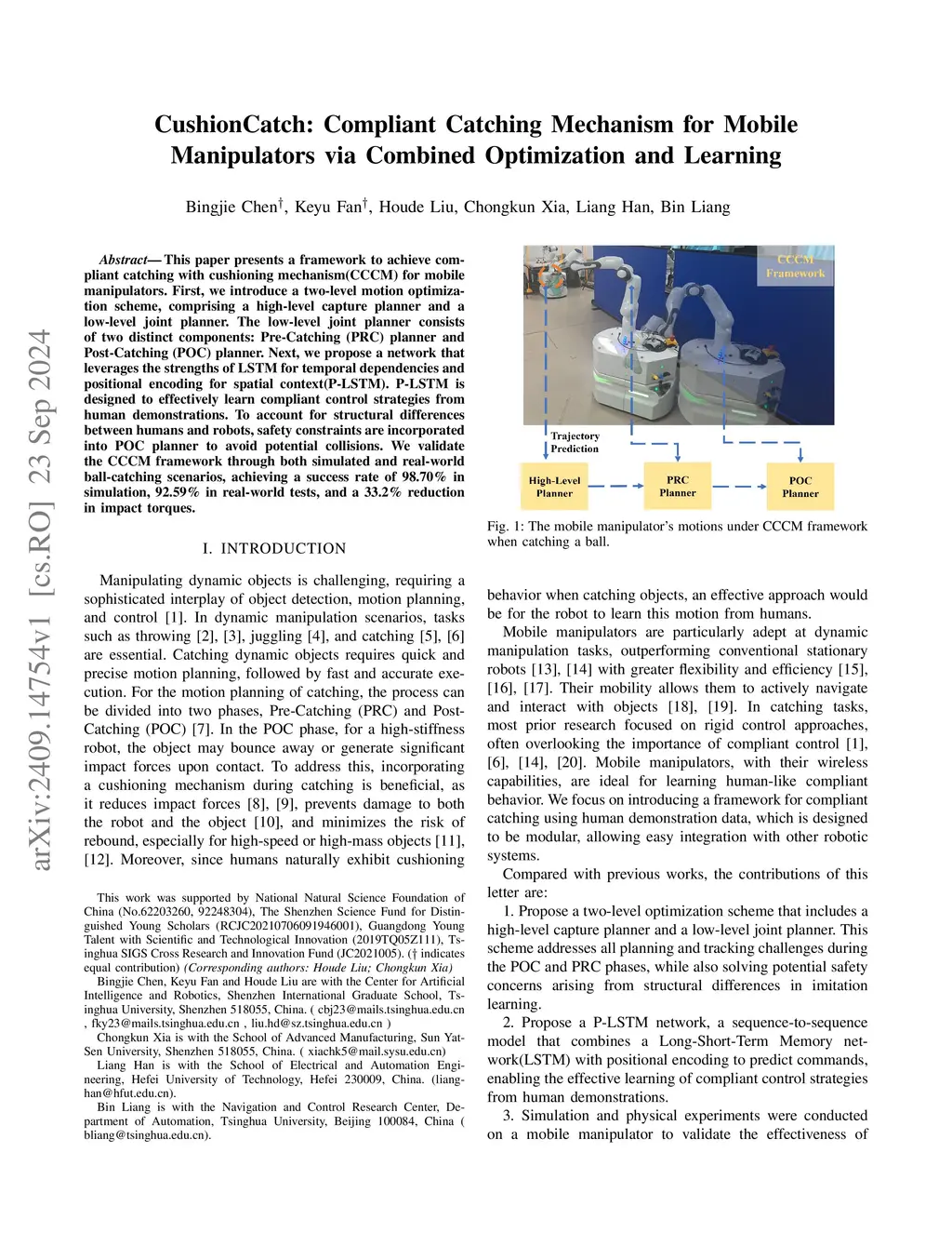 CushionCatch: A Compliant Catching Mechanism for Mobile Manipulators via Combined Optimization and Learning