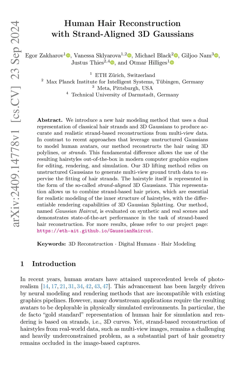 We introduce a new hair modeling method that uses a dual representation of classical hair strands and 3D Gaussians to produce accurate and realistic strand-based reconstructions from multi-view data. In contrast to recent approaches that leverage unstructured Gaussians to model human avatars, our method reconstructs the hair using 3D polylines, or strands. This fundamental difference allows the use of the resulting hairstyles out-of-the-box in modern computer graphics engines for editing, rendering, and simulation. Our 3D lifting method relies on unstructured Gaussians to generate multi-view ground truth data to supervise the fitting of hair strands. The hairstyle itself is represented in the form of the so-called strand-aligned 3D Gaussians. This representation allows us to combine strand-based hair priors, which are essential for realistic modeling of the inner structure of hairstyles, with the differentiable rendering capabilities of 3D Gaussian Splatting. Our method, named Gaussian Haircut, is evaluated on synthetic and real scenes and demonstrates state-of-the-art performance in the task of strand-based hair reconstruction.
