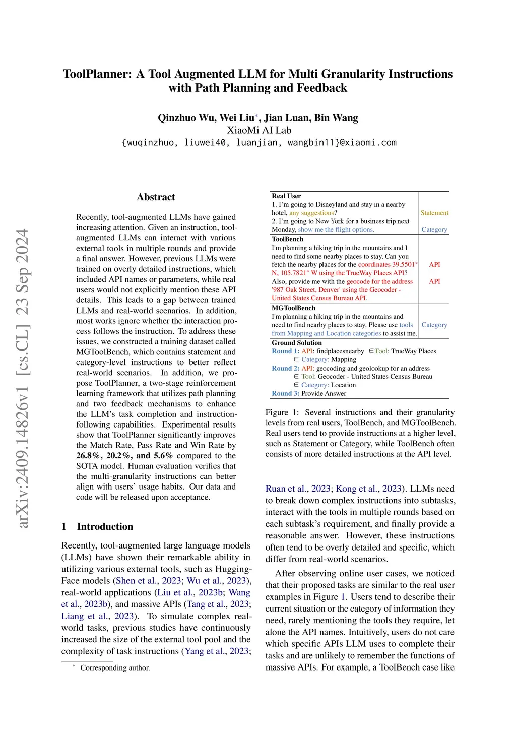 ToolPlanner: A Tool Augmented LLM for Multi Granularity Instructions