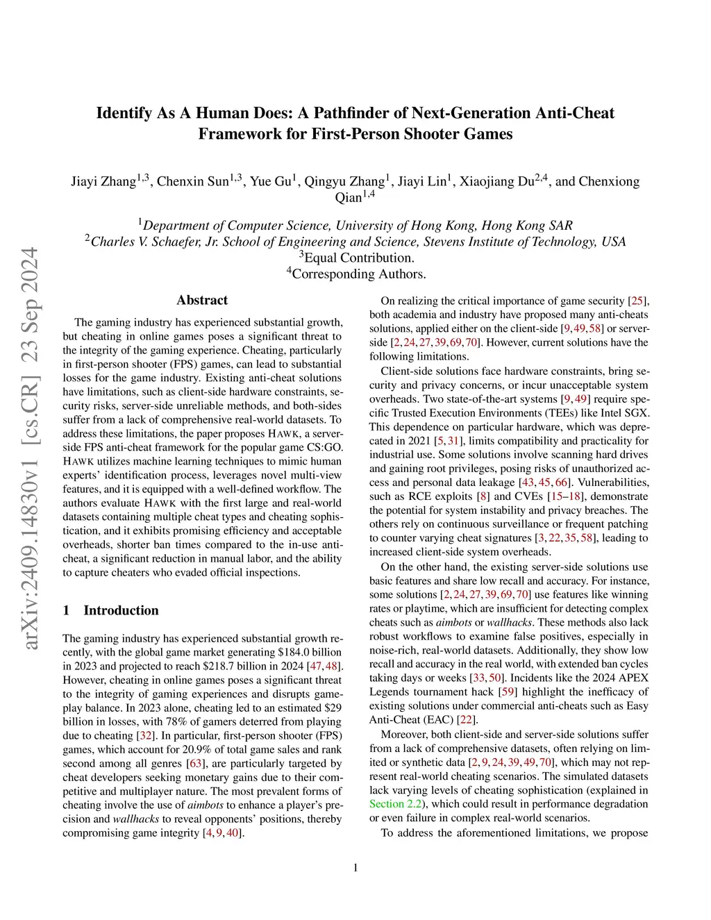 The gaming industry has experienced substantial growth, but cheating in online games poses a significant threat to the integrity of the gaming experience. Cheating, particularly in first-person shooter (FPS) games, can lead to substantial losses for the game industry. Existing anti-cheat solutions have limitations, such as client-side hardware constraints, security risks, server-side unreliable methods, and both-sides suffer from a lack of comprehensive real-world datasets. To address these limitations, the paper proposes HAWK, a server-side FPS anti-cheat framework for the popular game CS:GO. HAWK utilizes machine learning techniques to mimic human experts' identification process, leverages novel multi-view features, and it is equipped with a well-defined workflow. The authors evaluate HAWK with the first large and real-world datasets containing multiple cheat types and cheating sophistication, and it exhibits promising efficiency and acceptable overheads, shorter ban times compared to the in-use anti-cheat, a significant reduction in manual labor, and the ability to capture cheaters who evaded official inspections.