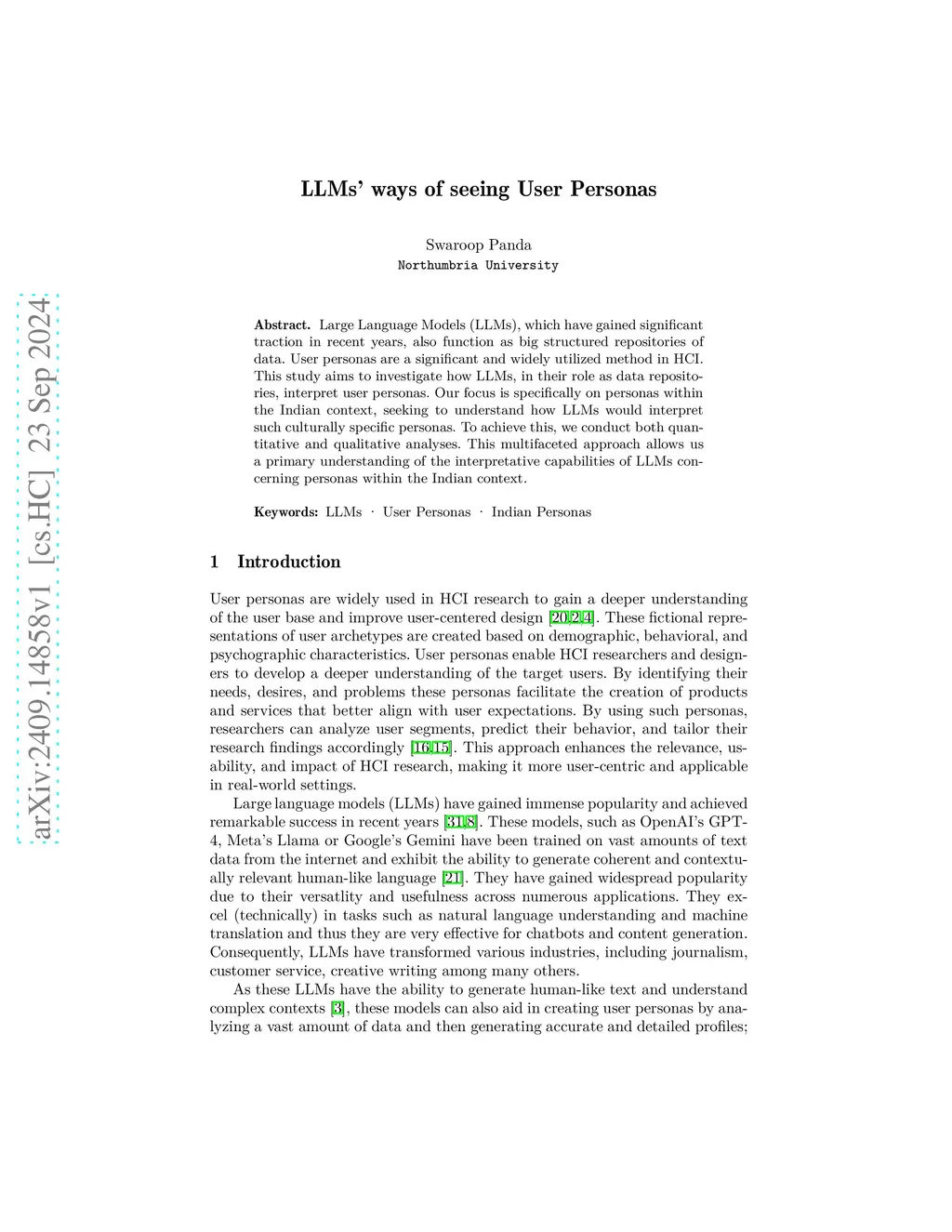 Large Language Models (LLMs), which have gained significant traction in recent years, also function as big structured repositories of data. User personas are a significant and widely utilized method in HCI. This study aims to investigate how LLMs, in their role as data repositories, interpret user personas. Our focus is specifically on personas within the Indian context, seeking to understand how LLMs would interpret such culturally specific personas. To achieve this, we conduct both quantitative and qualitative analyses. This multifaceted approach allows us a primary understanding of the interpretative capabilities of LLMs concerning personas within the Indian context.