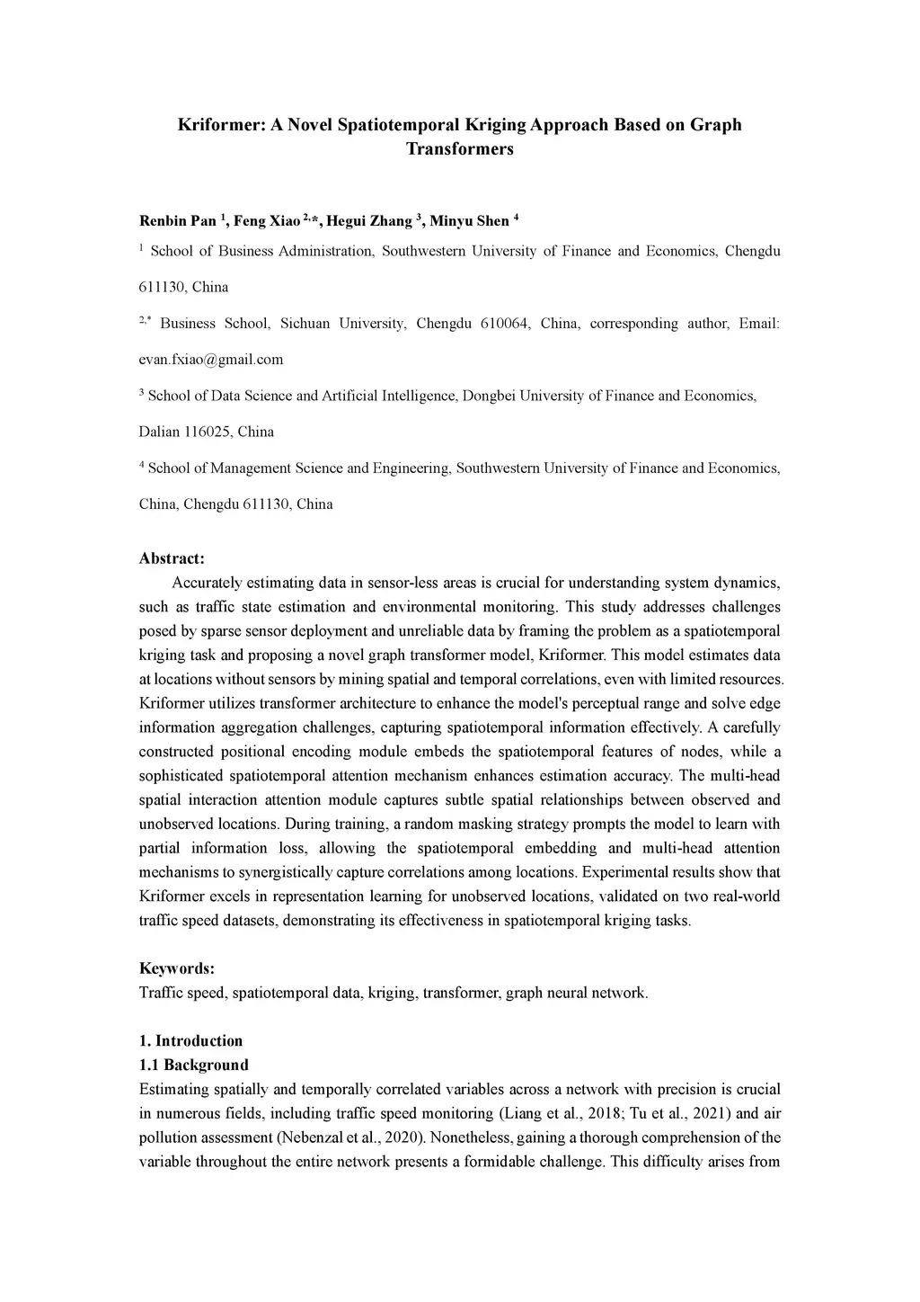 Accurately estimating data in sensor-less areas is crucial for understanding system dynamics, such as traffic state estimation and environmental monitoring. This study addresses challenges posed by sparse sensor deployment and unreliable data by framing the problem as a spatiotemporal kriging task and proposing a novel graph transformer model, Kriformer. This model estimates data at locations without sensors by mining spatial and temporal correlations, even with limited resources. Kriformer utilizes transformer architecture to enhance the model's perceptual range and solve edge information aggregation challenges, capturing spatiotemporal information effectively. A carefully constructed positional encoding module embeds the spatiotemporal features of nodes, while a sophisticated spatiotemporal attention mechanism enhances estimation accuracy. The multi-head spatial interaction attention module captures subtle spatial relationships between observed and unobserved locations. During training, a random masking strategy prompts the model to learn with partial information loss, allowing the spatiotemporal embedding and multi-head attention mechanisms to synergistically capture correlations among locations. Experimental results show that Kriformer excels in representation learning for unobserved locations, validated on two real-world traffic speed datasets, demonstrating its effectiveness in spatiotemporal kriging tasks.