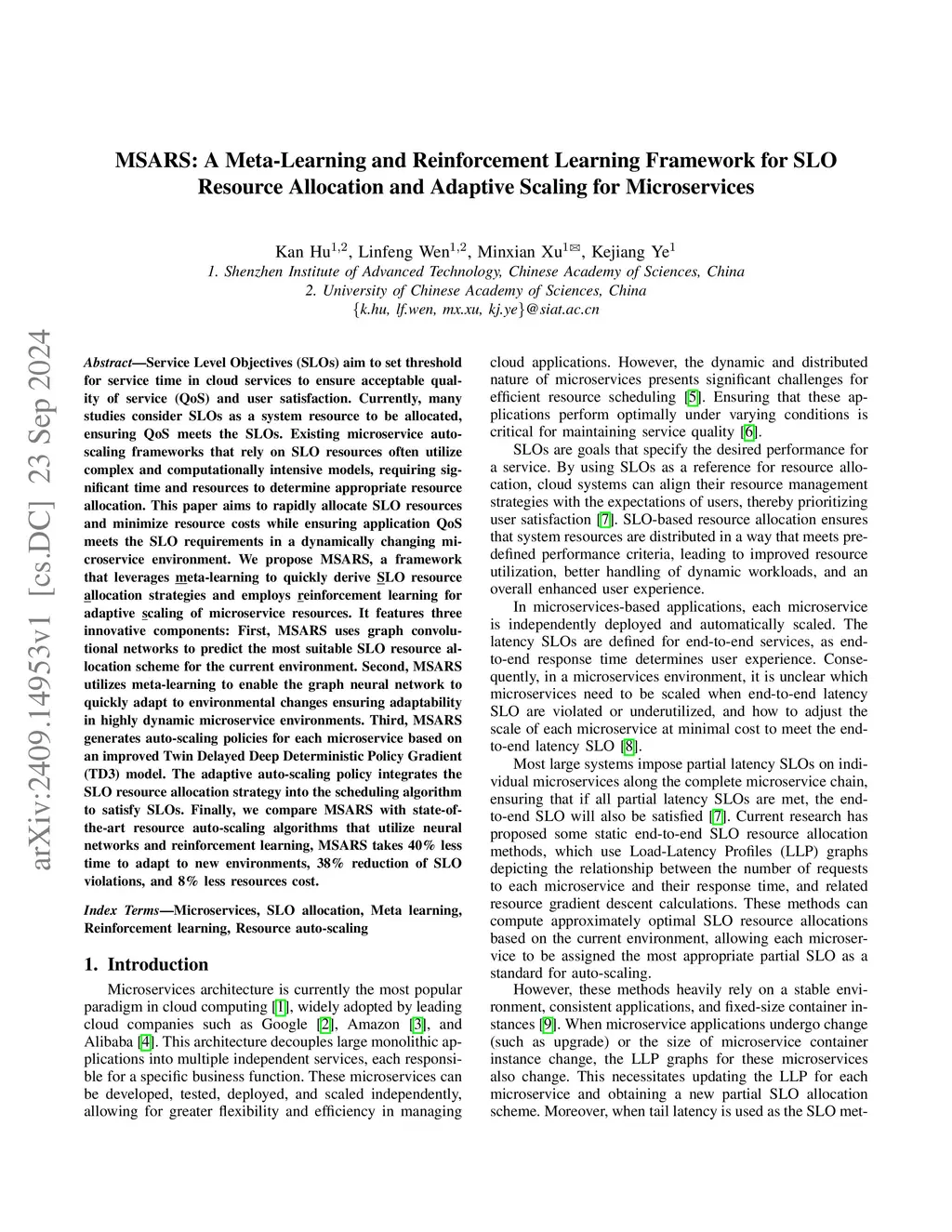 MSARS: A Meta-Learning and Reinforcement Learning Framework for SLO