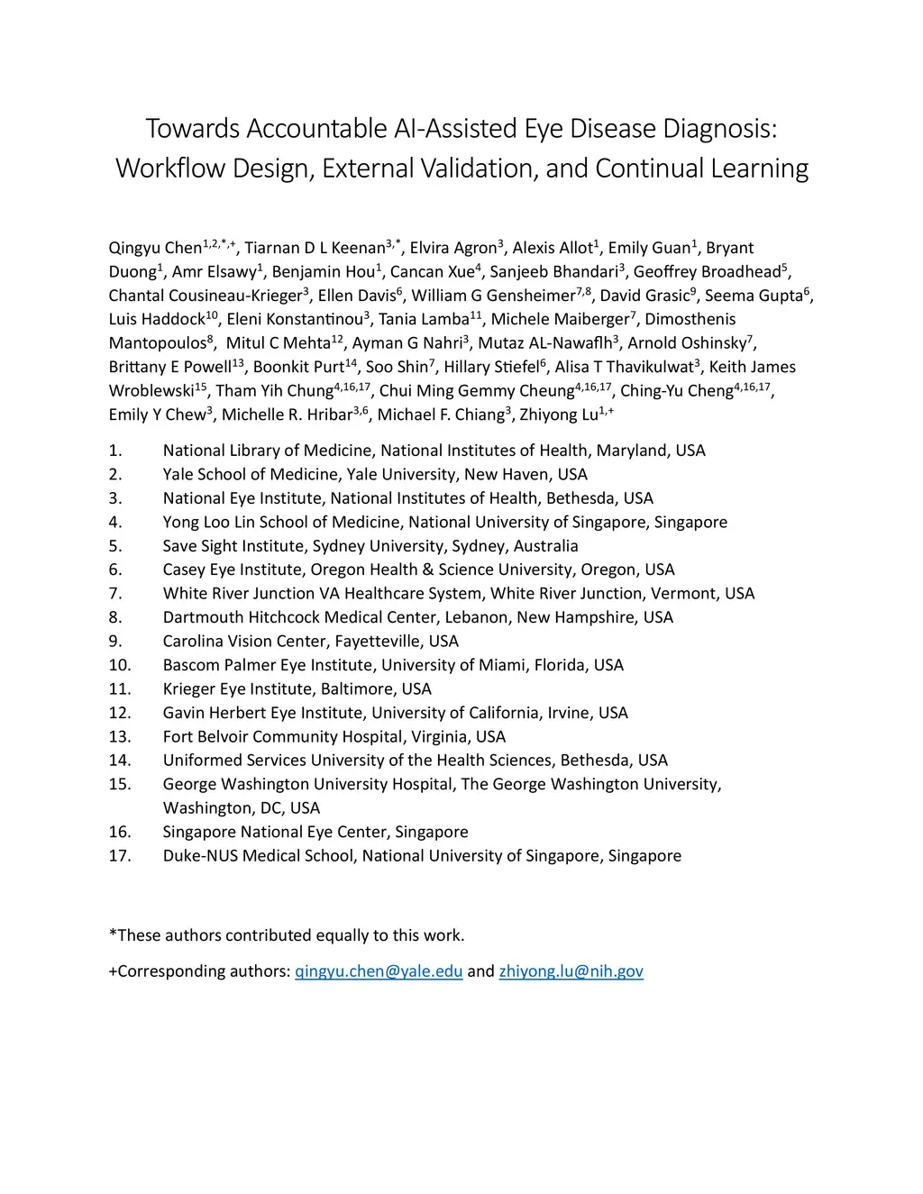 AI Workflow, External Validation, and Development in Eye Disease Diagnosis