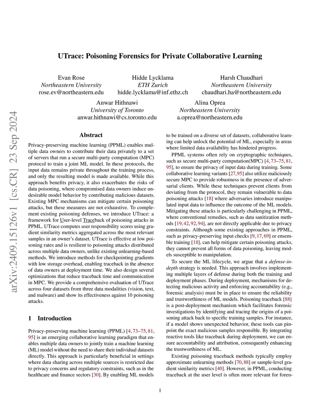 UTrace: Poisoning Forensics for Private Collaborative Learning
