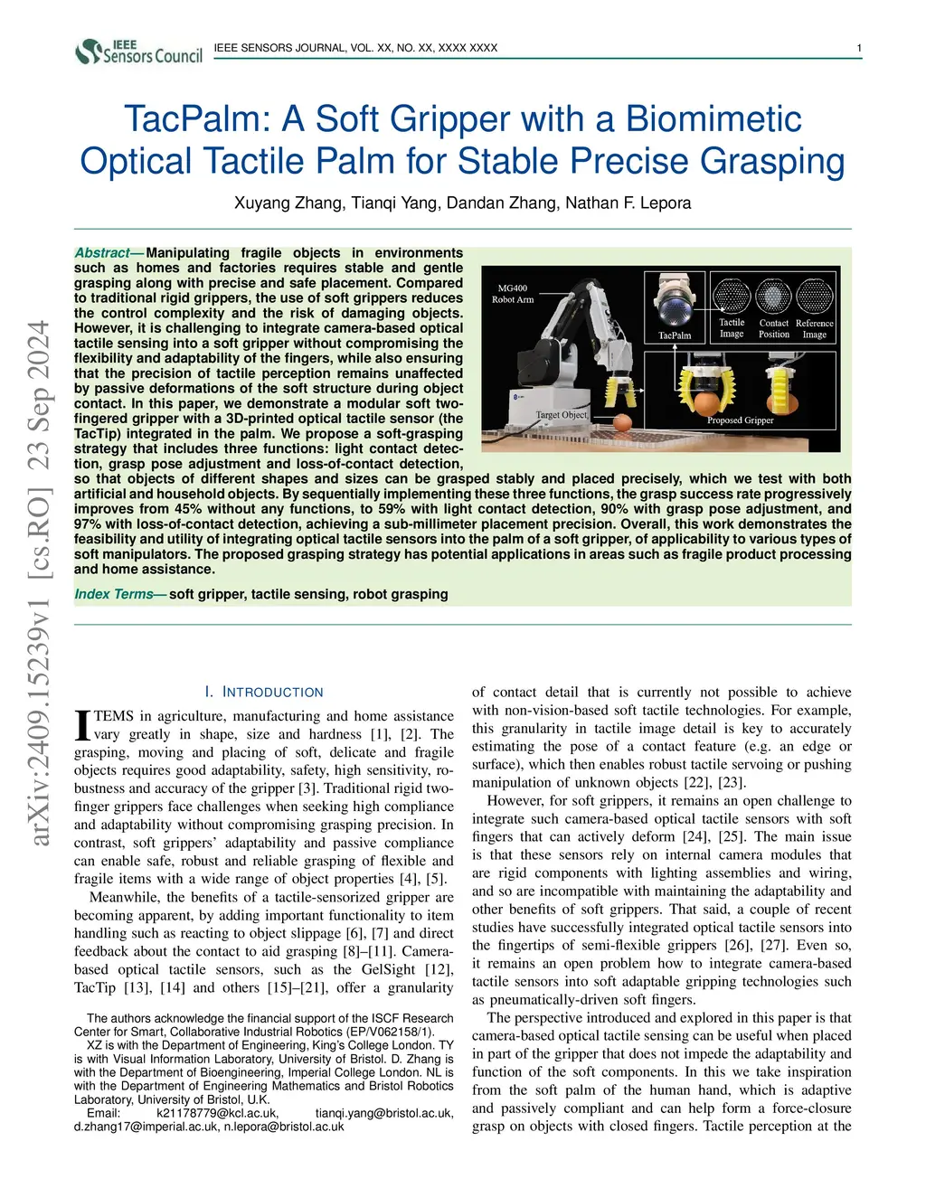 TacPalm: A Soft Gripper with a Biomimetic Optical Tactile Palm for