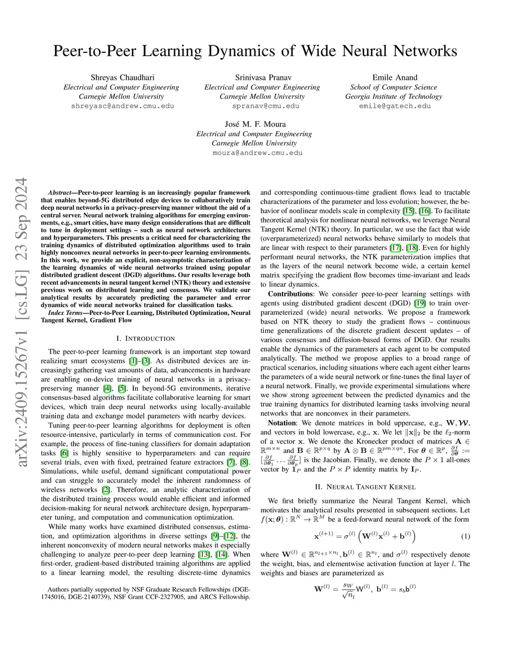 Peer-to-Peer Learning Dynamics of Wide Neural Networks