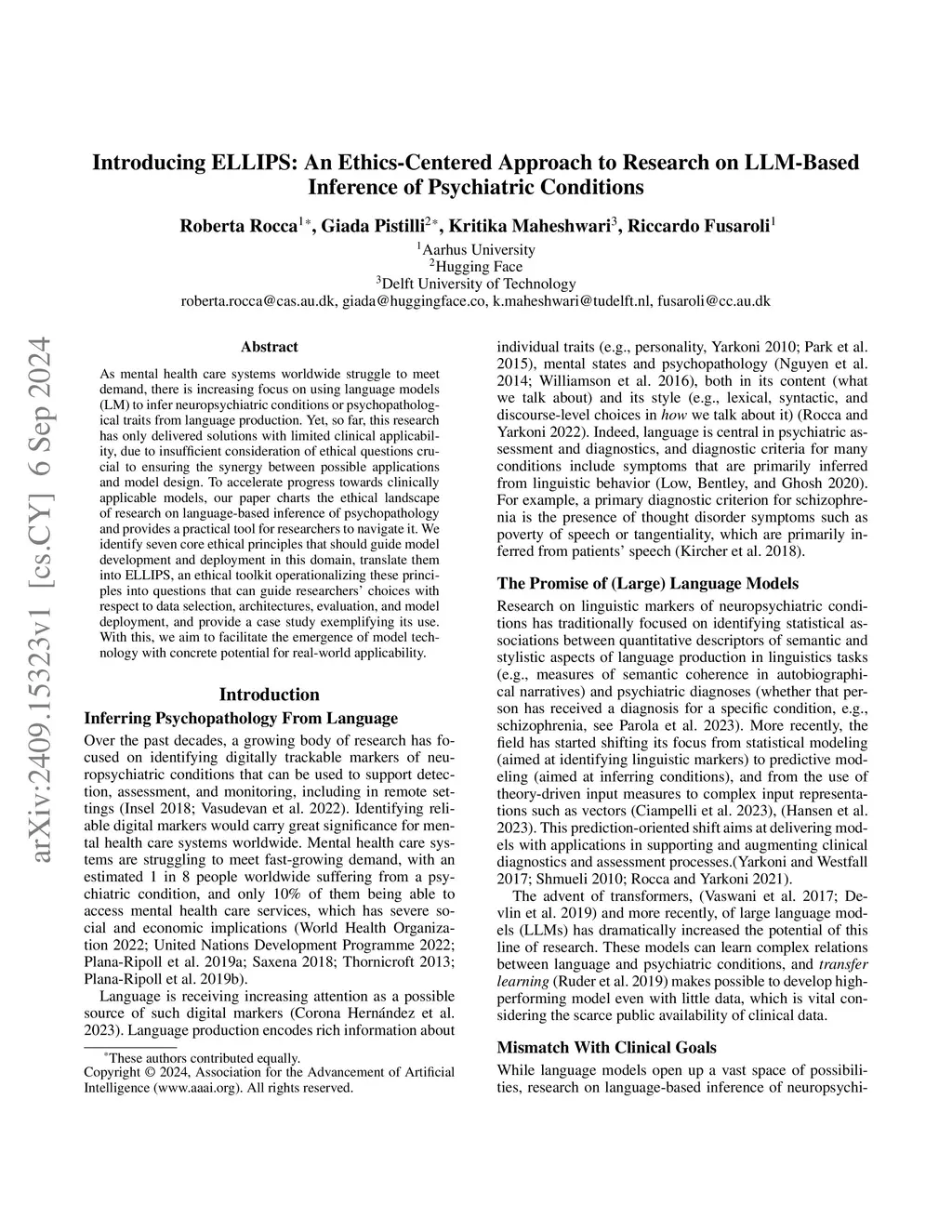As mental health care systems worldwide struggle to meet demand, there is increasing focus on using language models to infer neuropsychiatric conditions or psychopathological traits from language production. Yet, so far, this research has only delivered solutions with limited clinical applicability, due to insufficient consideration of ethical questions crucial to ensuring the synergy between possible applications and model design. To accelerate progress towards clinically applicable models, our paper charts the ethical landscape of research on language-based inference of psychopathology and provides a practical tool for researchers to navigate it. We identify seven core ethical principles that should guide model development and deployment in this domain, translate them into ELLIPS, an ethical toolkit operationalizing these principles into questions that can guide researchers' choices with respect to data selection, architectures, evaluation, and model deployment, and provide a case study exemplifying its use. With this, we aim to facilitate the emergence of model technology with concrete potential for real-world applicability.