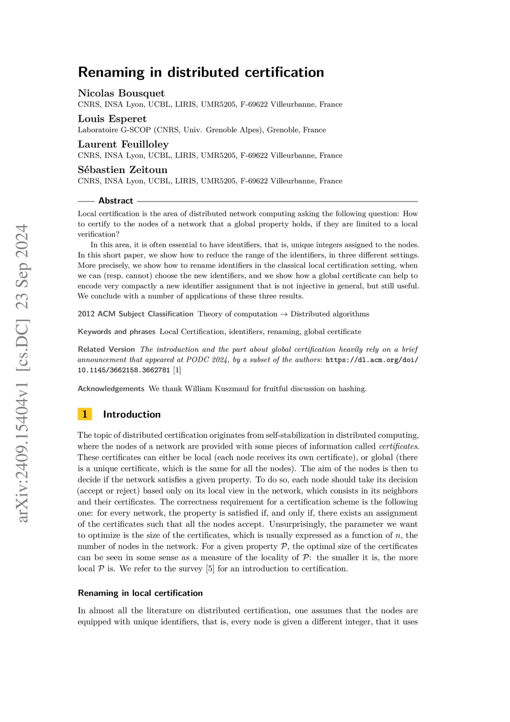 Renaming in distributed certification