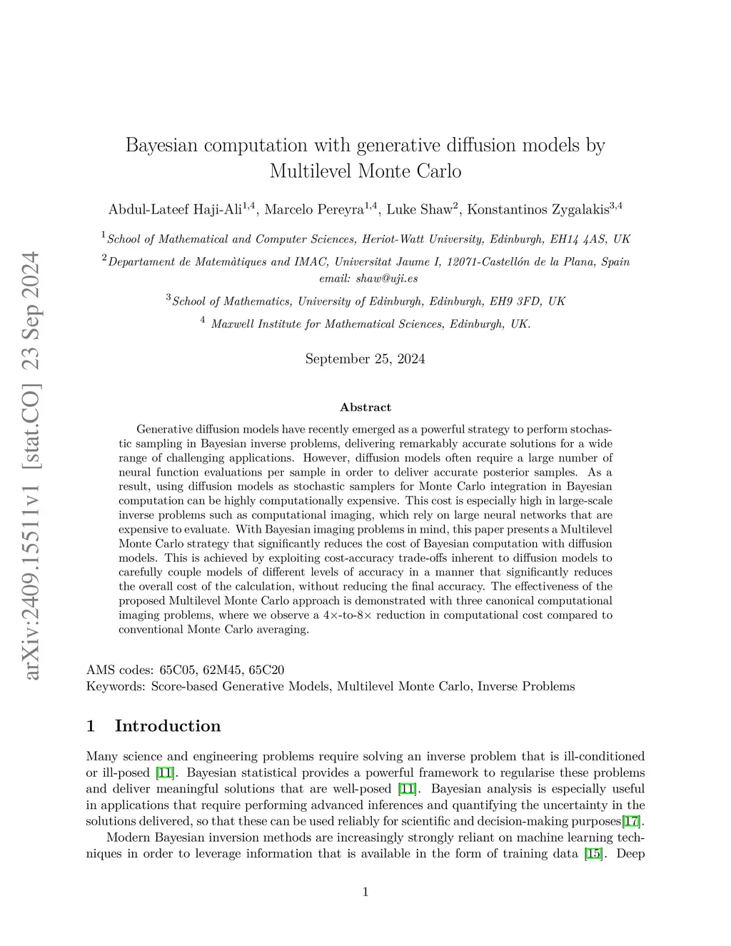 Generative diffusion models have recently emerged as a powerful strategy to perform stochastic sampling in Bayesian inverse problems, delivering remarkably accurate solutions for a wide range of challenging applications. However, diffusion models often require a large number of neural function evaluations per sample in order to deliver accurate posterior samples. As a result, using diffusion models as stochastic samplers for Monte Carlo integration in Bayesian computation can be highly computationally expensive, particularly in applications that require a substantial number of Monte Carlo samples for conducting uncertainty quantification analyses. This cost is especially high in large-scale inverse problems such as computational imaging, which rely on large neural networks that are expensive to evaluate. With quantitative imaging applications in mind, this paper presents a Multilevel Monte Carlo strategy that significantly reduces the cost of Bayesian computation with diffusion models. This is achieved by exploiting cost-accuracy trade-offs inherent to diffusion models to carefully couple models of different levels of accuracy in a manner that significantly reduces the overall cost of the calculation, without reducing the final accuracy. The proposed approach achieves a -to- reduction in computational cost w.r.t. standard techniques across three benchmark imaging problems.