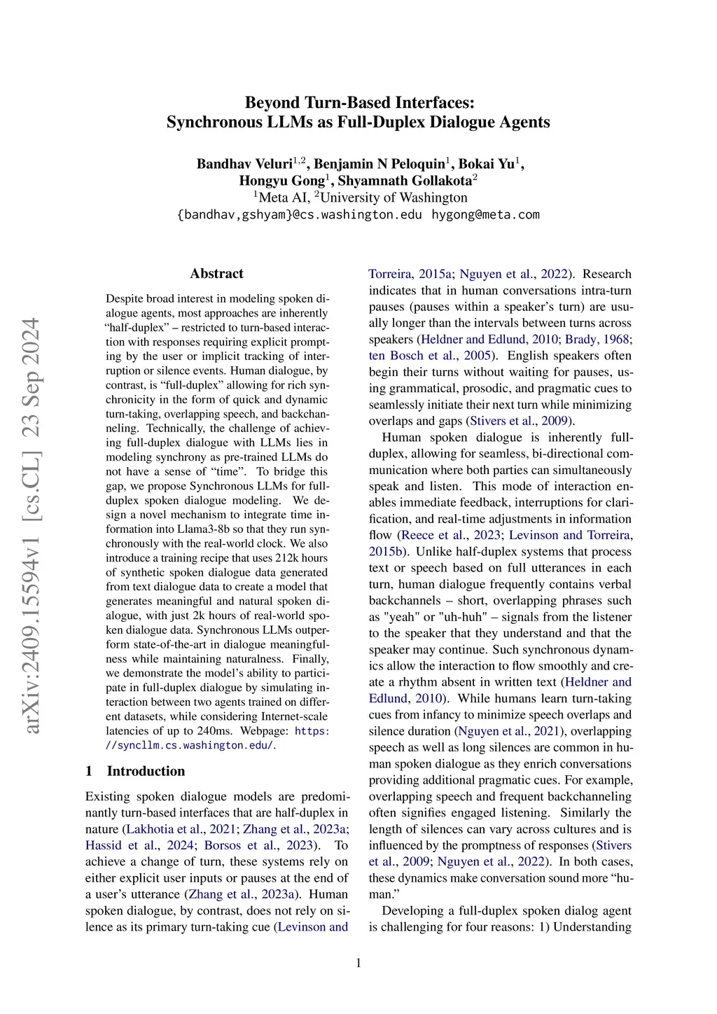 Beyond Turn-Based Interfaces: Synchronous LLMs as Full-Duplex Dialogue
