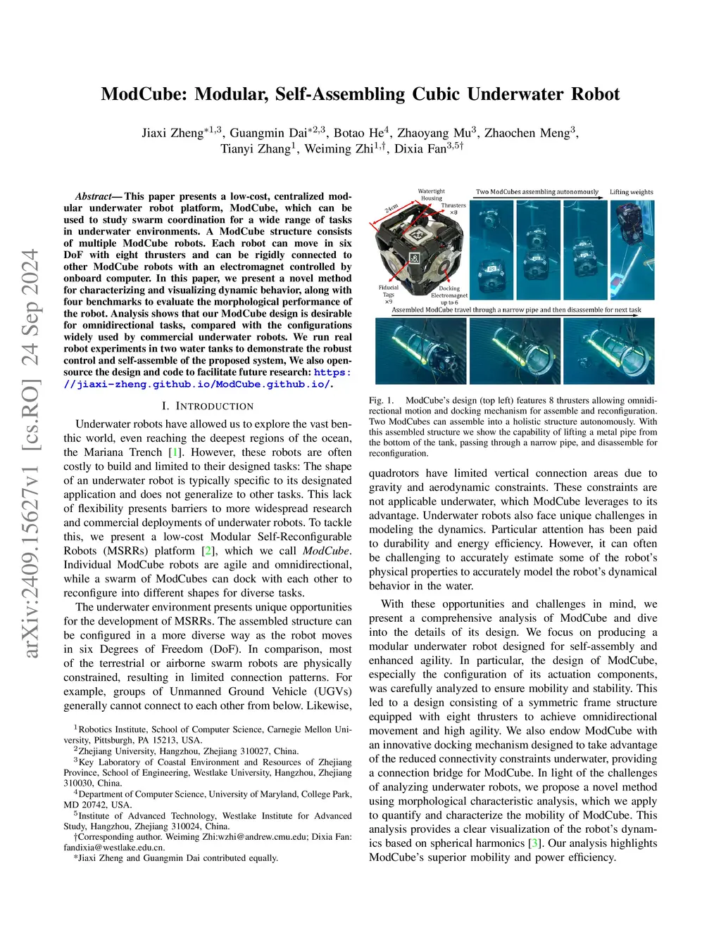 ModCube: Modular, Self-Assembling Cubic Underwater Robot