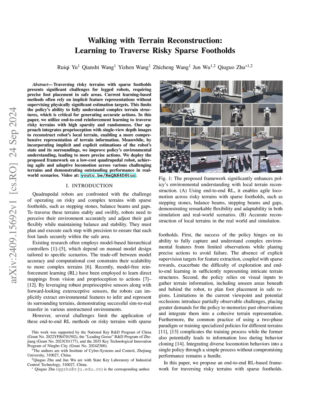 Walking with Terrain Reconstruction: Learning to Traverse Risky Sparse Footholds