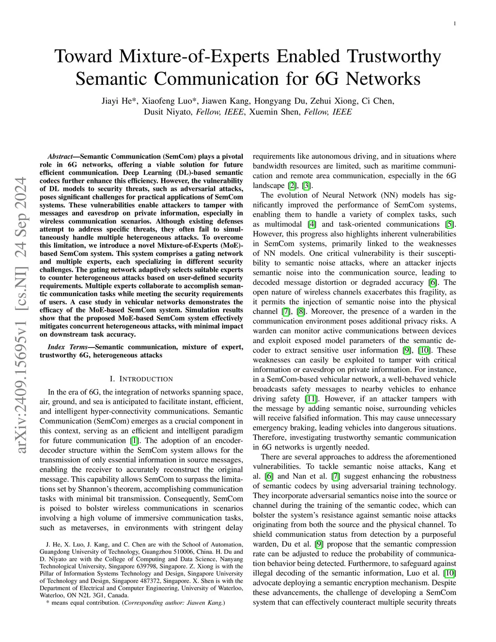 Semantic Communication (SemCom) plays a pivotal role in 6G networks, offering a viable solution for future efficient communication. Deep Learning (DL)-based semantic codecs further enhance this efficiency. However, the vulnerability of DL models to security threats, such as adversarial attacks, poses significant challenges for practical applications of SemCom systems. These vulnerabilities enable attackers to tamper with messages and eavesdrop on private information, especially in wireless communication scenarios. Although existing defenses attempt to address specific threats, they often fail to simultaneously handle multiple heterogeneous attacks. To overcome this limitation, we introduce a novel Mixture-of-Experts (MoE)-based SemCom system. This system comprises a gating network and multiple experts, each specializing in different security challenges. The gating network adaptively selects suitable experts to counter heterogeneous attacks based on user-defined security requirements. Multiple experts collaborate to accomplish semantic communication tasks while meeting the security requirements of users. A case study in vehicular networks demonstrates the efficacy of the MoE-based SemCom system. Simulation results show that the proposed MoE-based SemCom system effectively mitigates concurrent heterogeneous attacks, with minimal impact on downstream task accuracy.