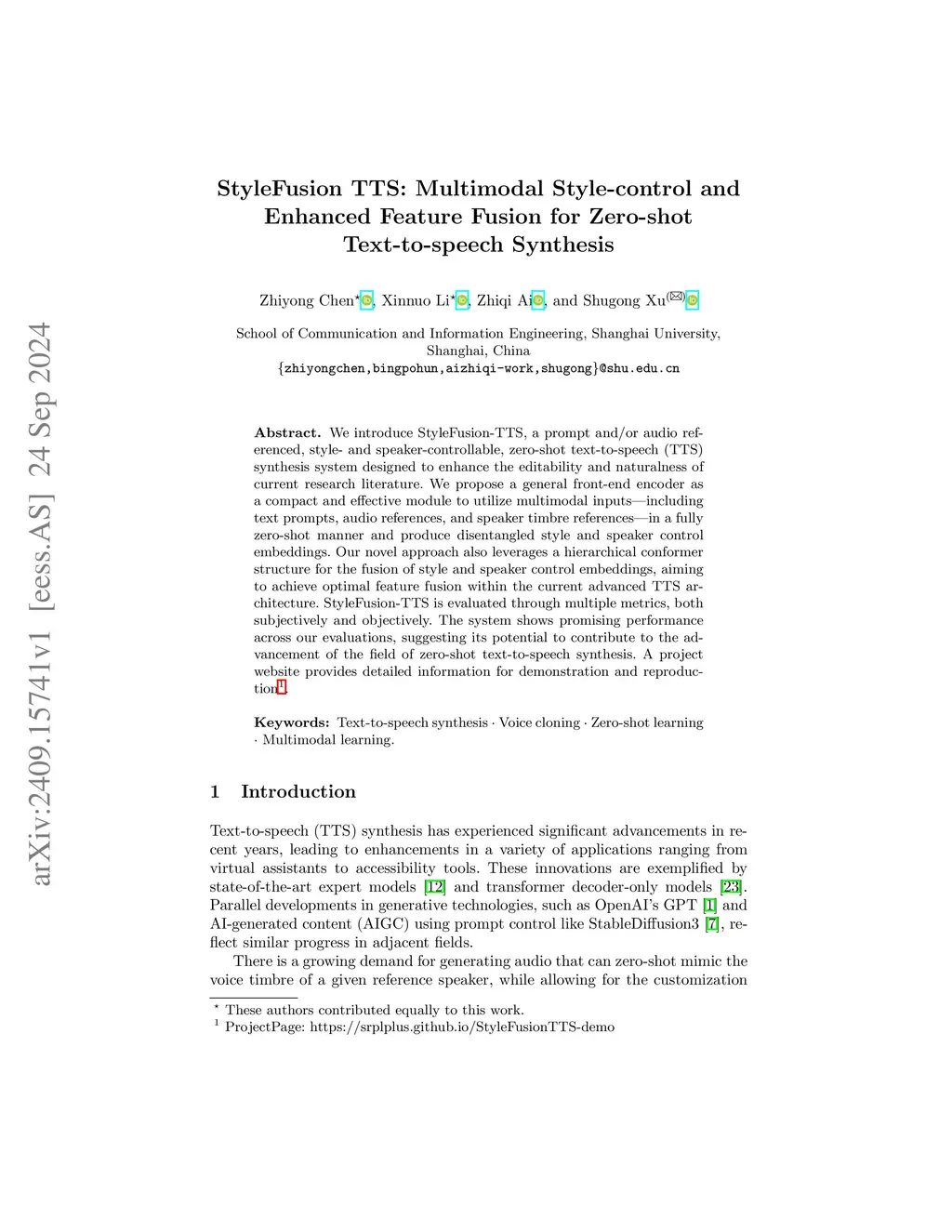 StyleFusion TTS: Multimodal Style-control and Enhanced Feature Fusion