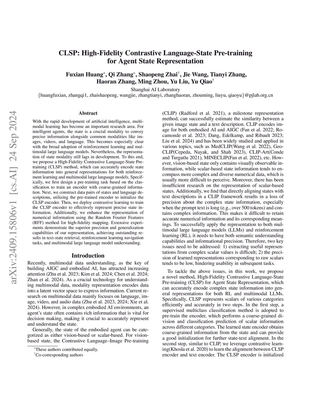 CLSP: High-Fidelity Contrastive Language-State Pre-training for Agent