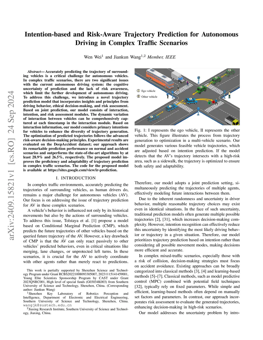 Intention-based and Risk-Aware Trajectory Prediction for Autonomous