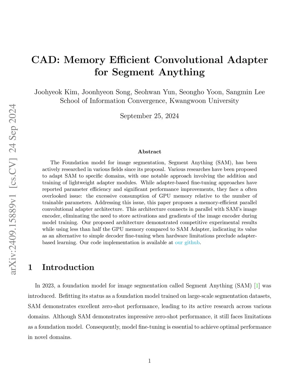 CAD: Memory Efficient Convolutional Adapter for Segment Anything