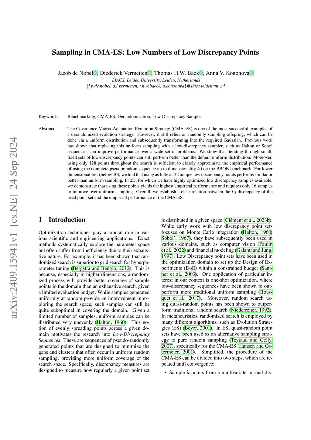 Sampling in CMA-ES: Low Numbers of Low Discrepancy Points