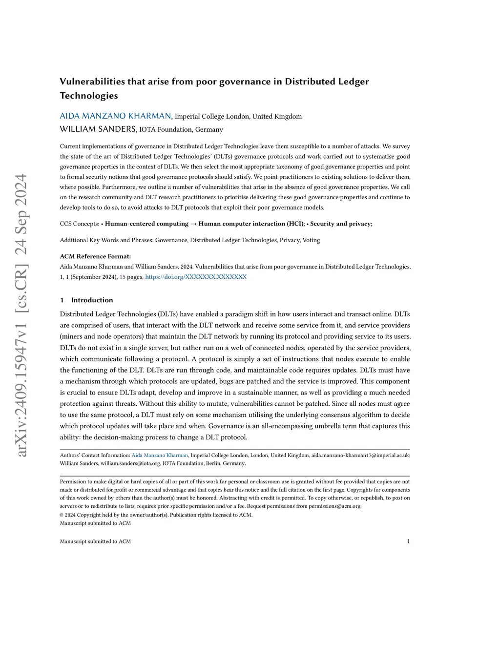 Vulnerabilities that arise from poor governance in Distributed Ledger Technologies
