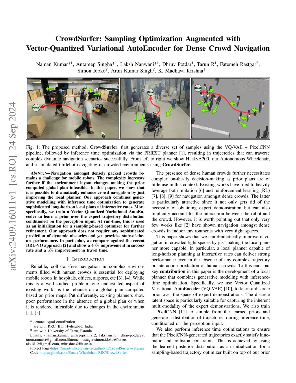 CrowdSurfer: Sampling Optimization Augmented with Vector-Quantized Variational AutoEncoder for Dense Crowd Navigation