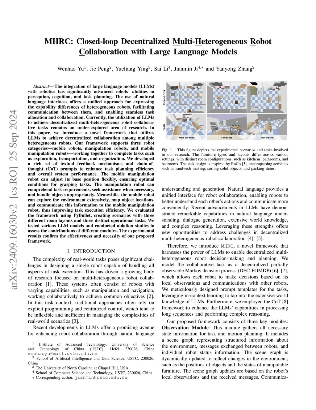 MHRC: Closed-loop Decentralized Multi-Heterogeneous Robot Collaboration