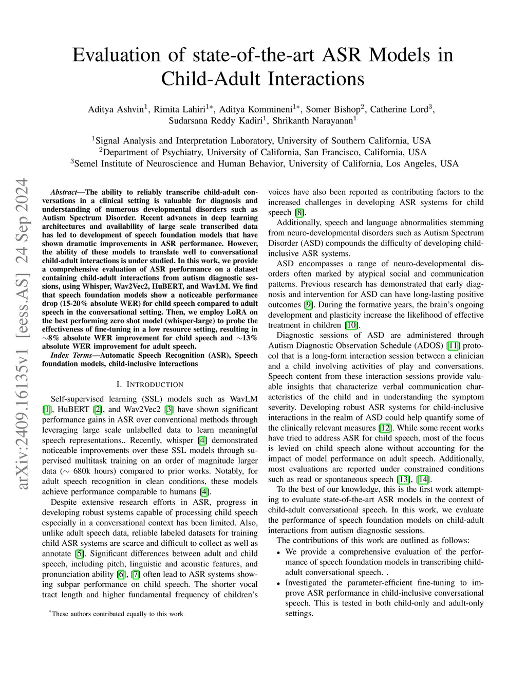 Evaluation of state-of-the-art ASR Models in Child-Adult Interactions