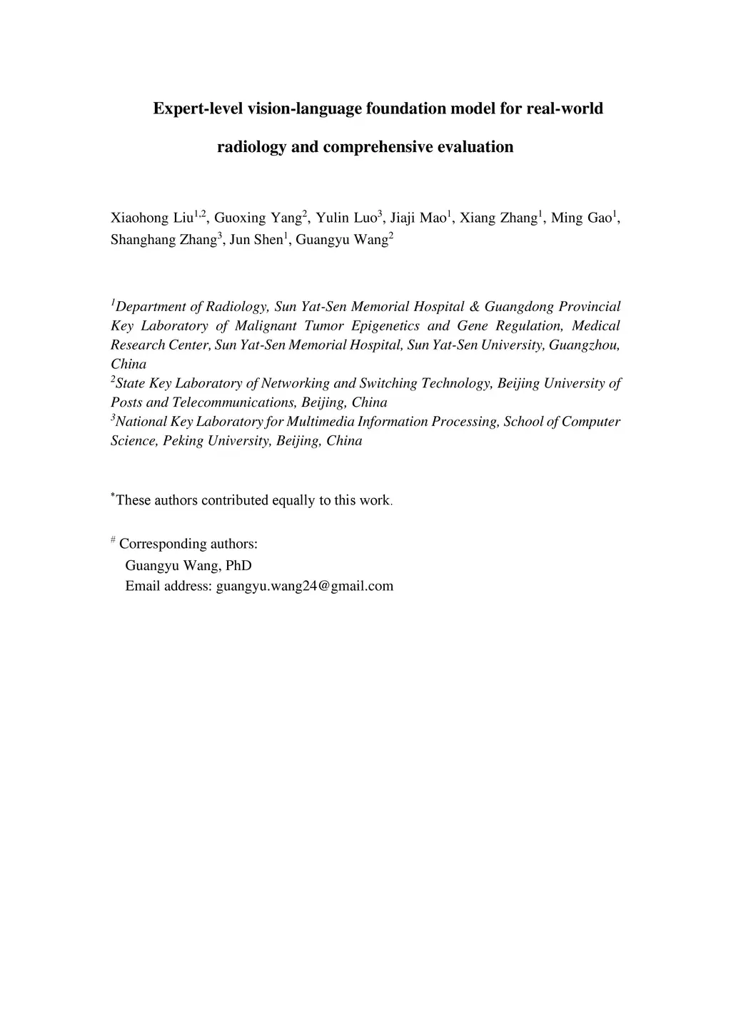 Expert-level vision-language foundation model for real-world radiology