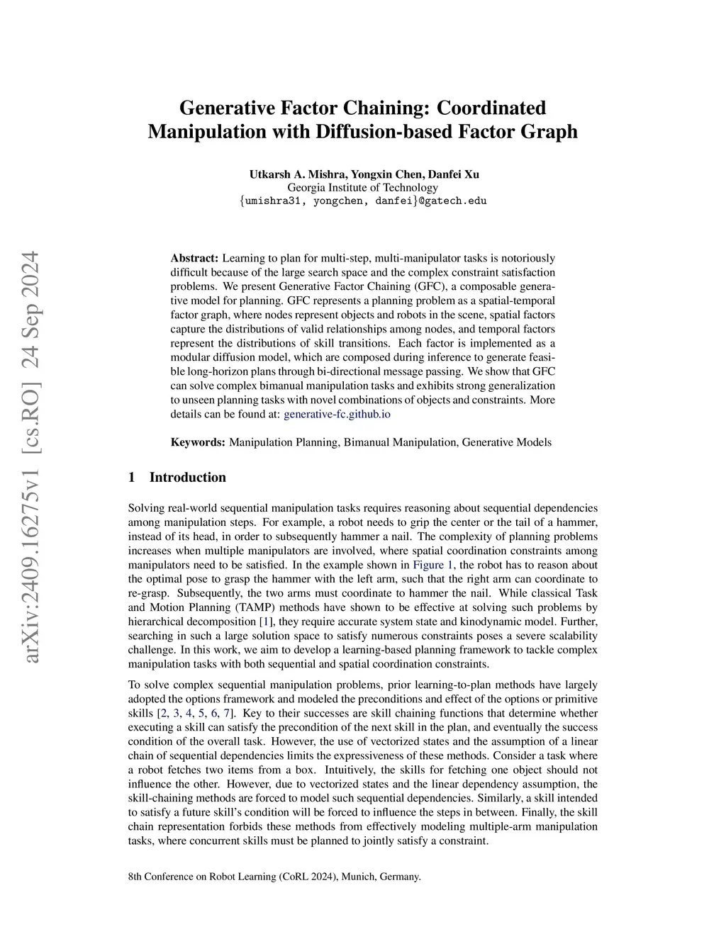 Generative Factor Chaining: Coordinated Manipulation with