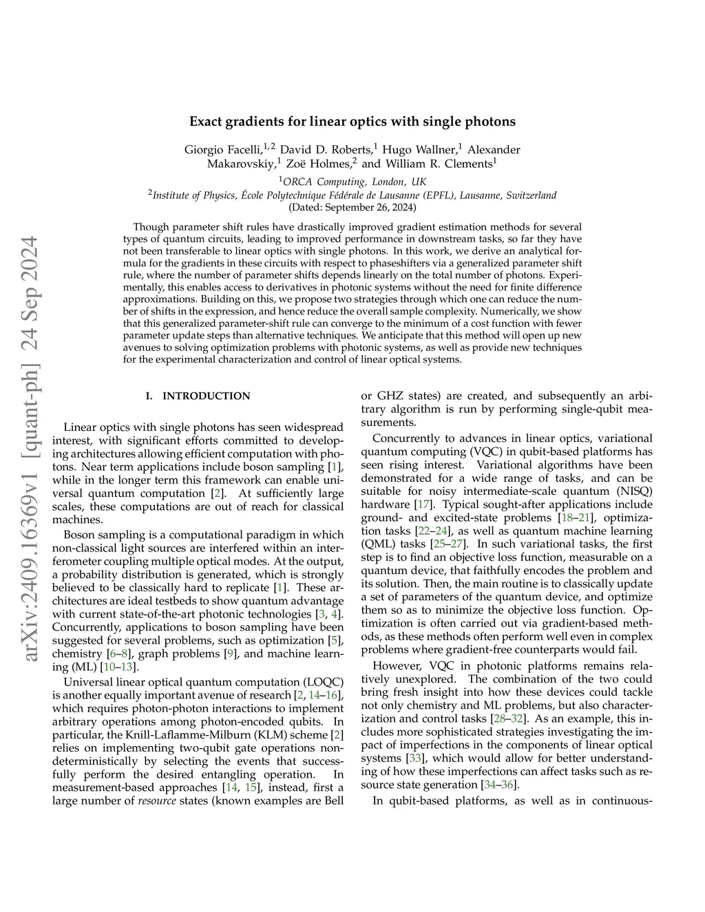 Exact gradients for linear optics with single photons