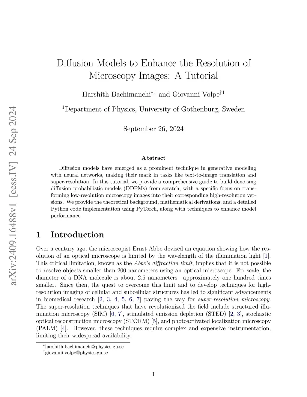 Diffusion models have emerged as a prominent technique in generative modeling with neural networks, making their mark in tasks like text-to-image translation and super-resolution. In this tutorial, we provide a comprehensive guide to build denoising diffusion probabilistic models (DDPMs) from scratch, with a specific focus on transforming low-resolution microscopy images into their corresponding high-resolution versions. We provide the theoretical background, mathematical derivations, and a detailed Python code implementation using PyTorch, along with techniques to enhance model performance.