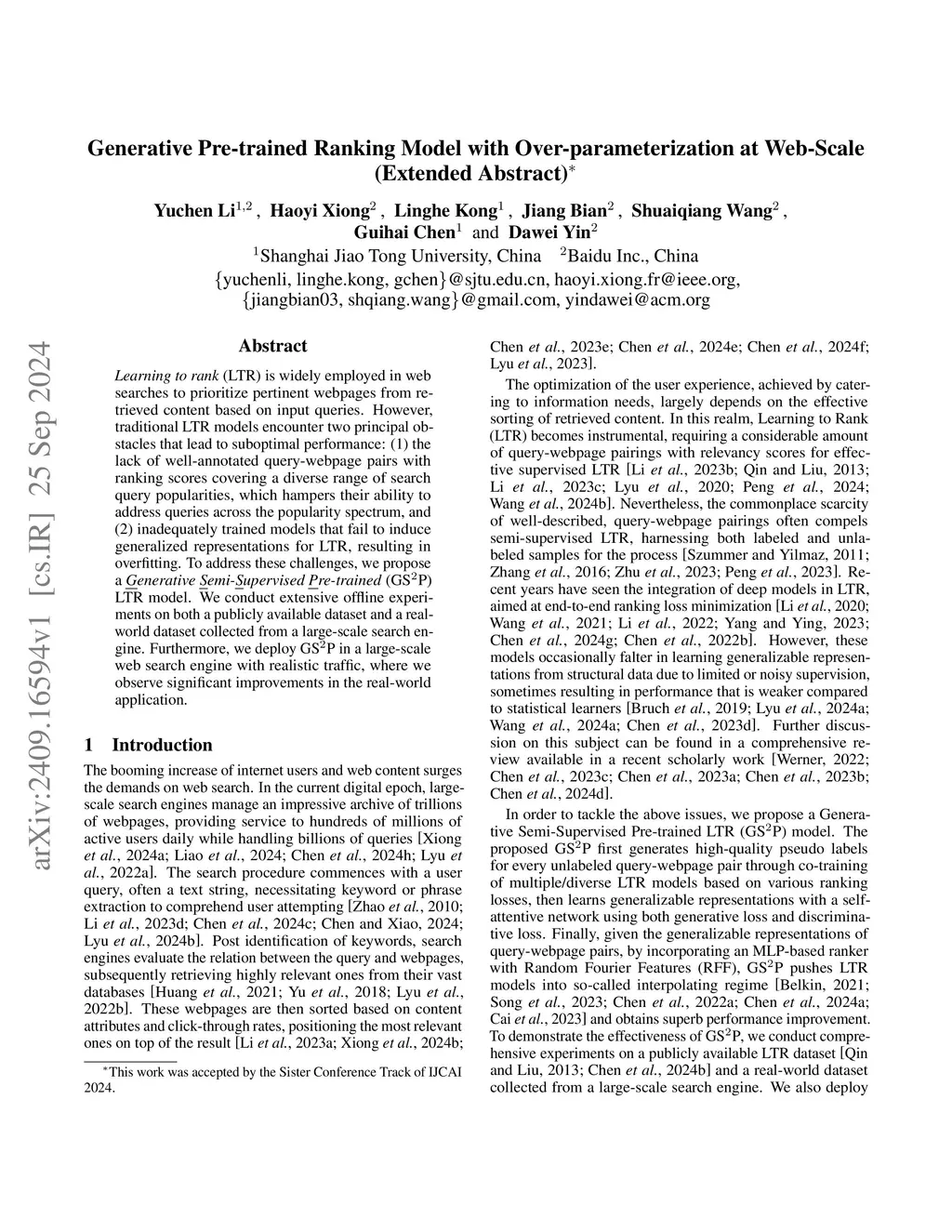 Generative Pre-trained Ranking Model with Over-parameterization at