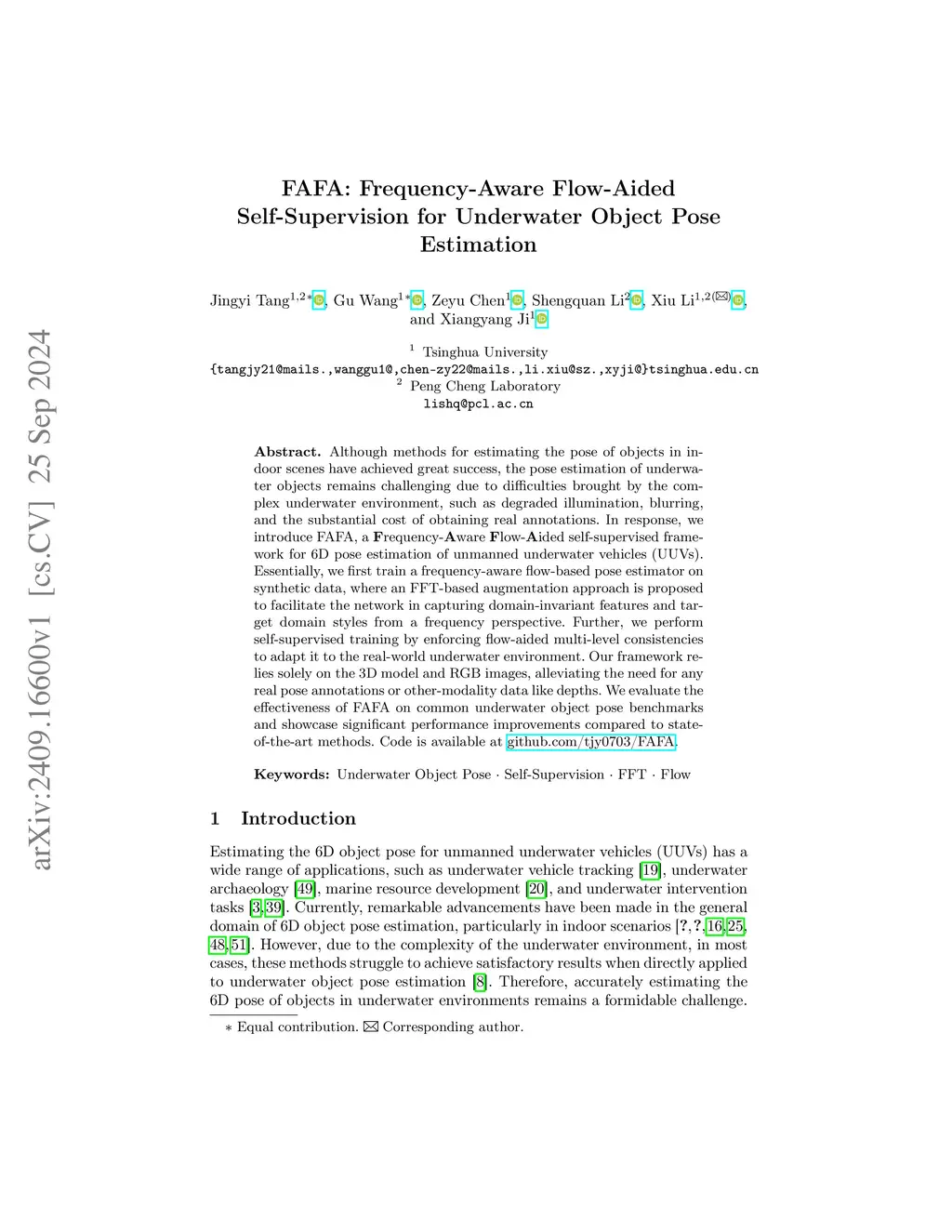 FAFA: Frequency-Aware Flow-Aided Self-Supervision for Underwater Object