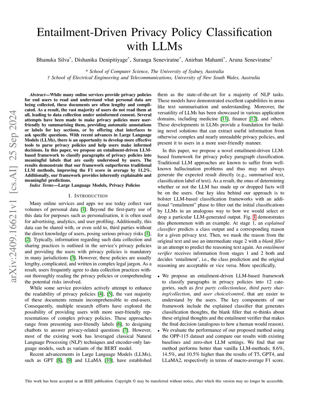 Entailment-Driven Privacy Policy Classification with LLMs