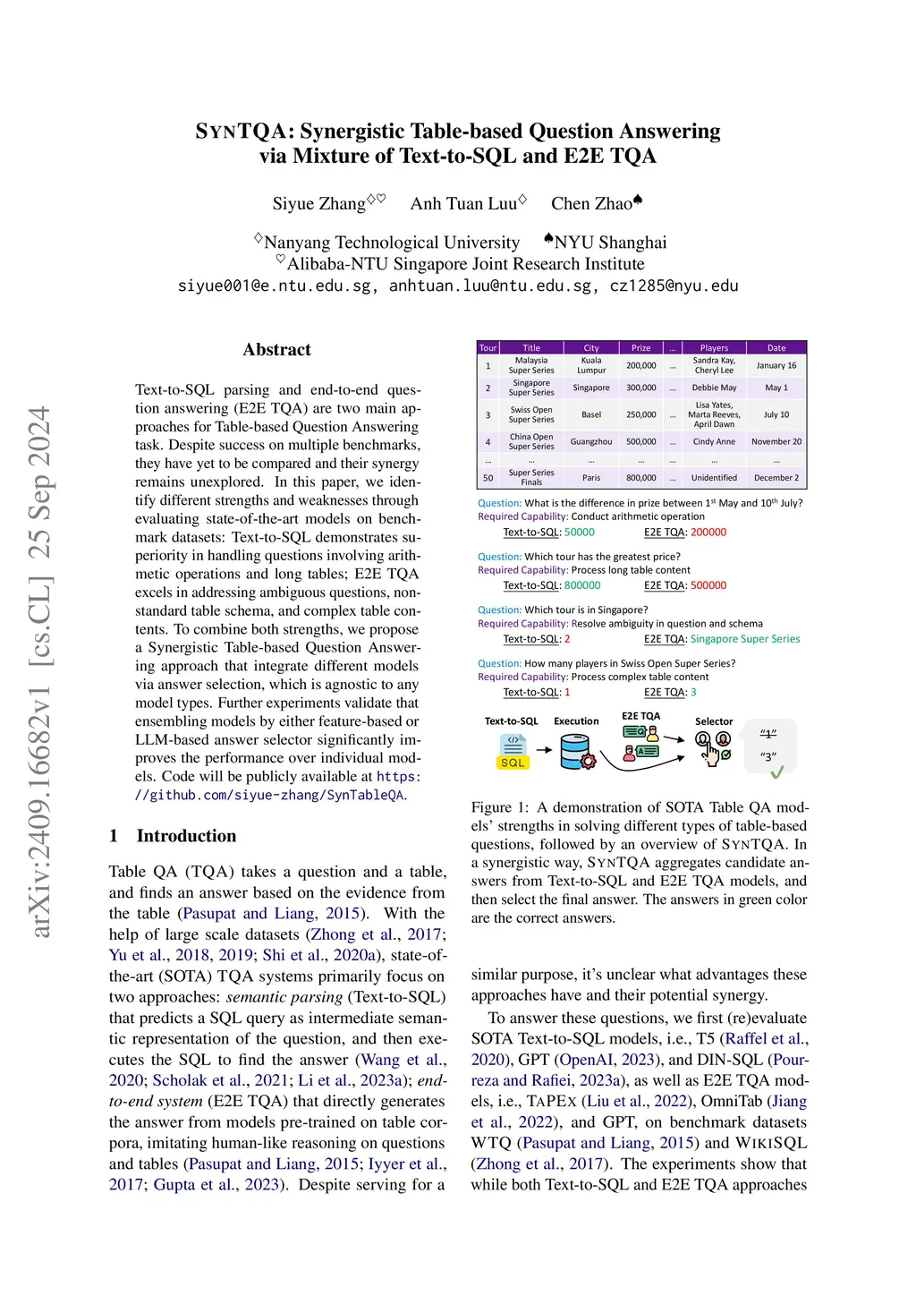 Text-to-SQL and E2E TQA