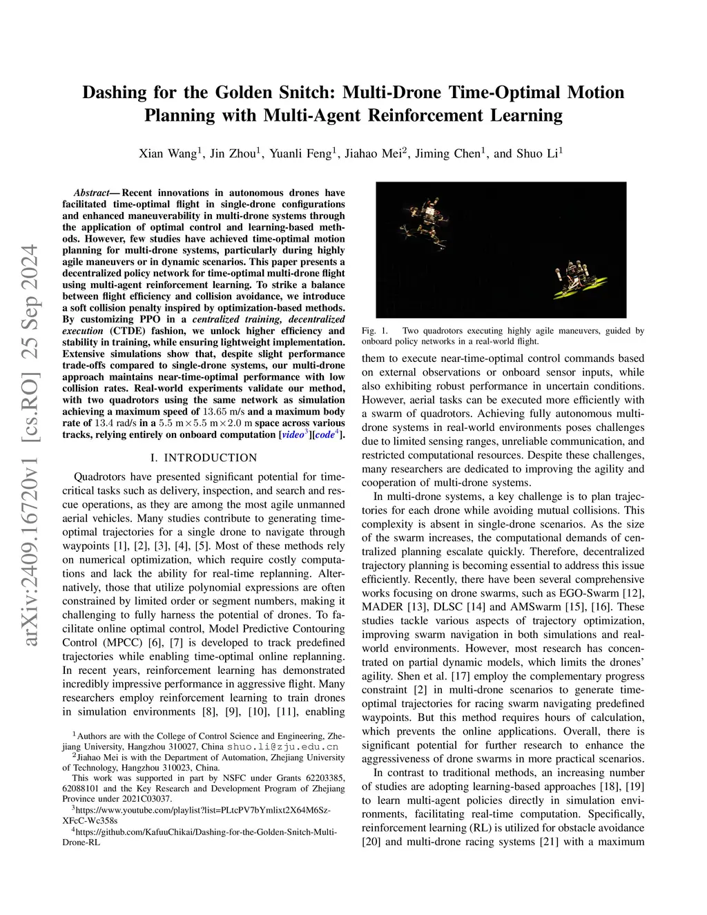 Dashing for the Golden Snitch: Multi-Drone Time-Optimal Motion Planning with Multi-Agent Reinforcement Learning