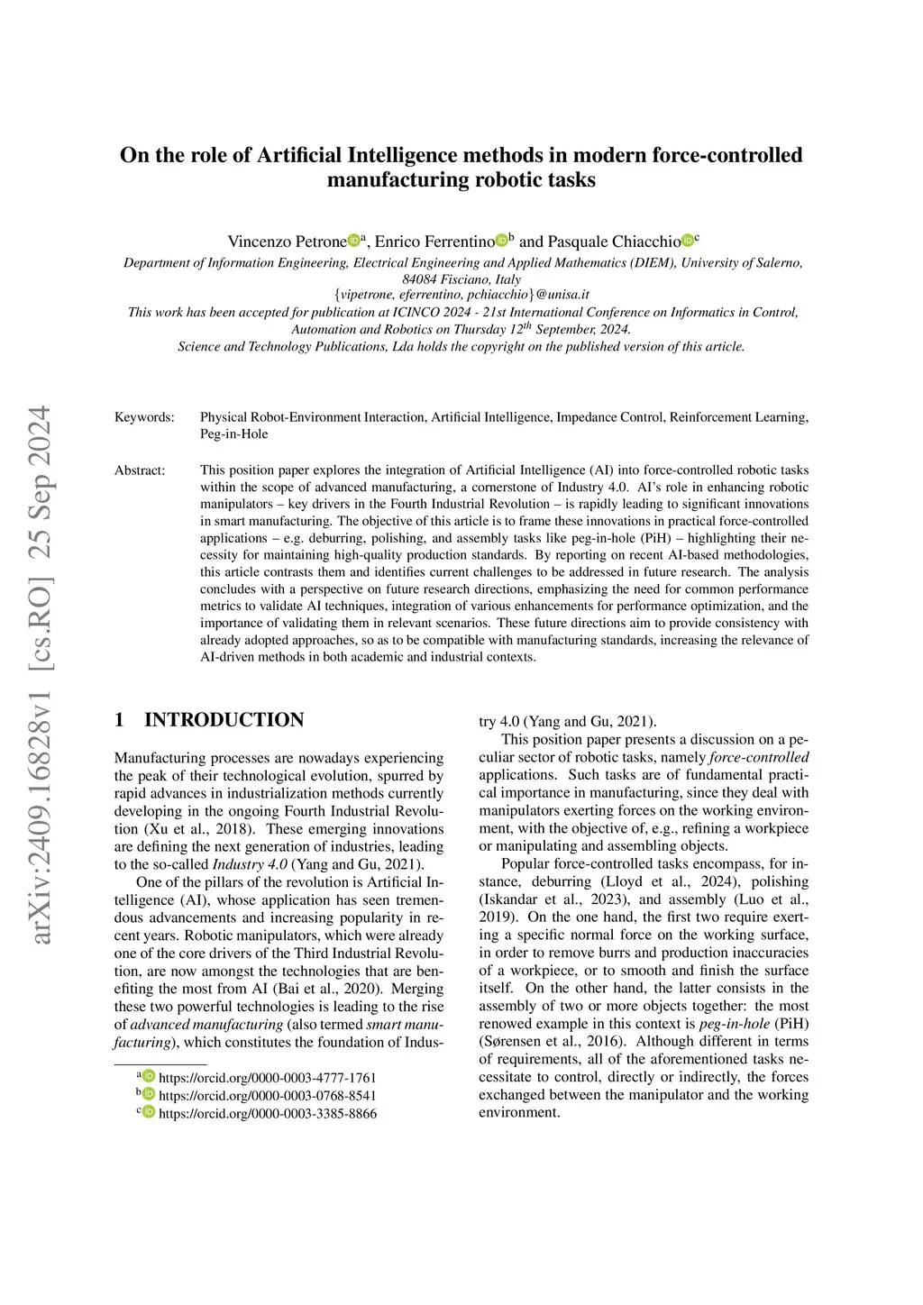 On the role of Artificial Intelligence methods in modern force-controlled manufacturing robotic tasks