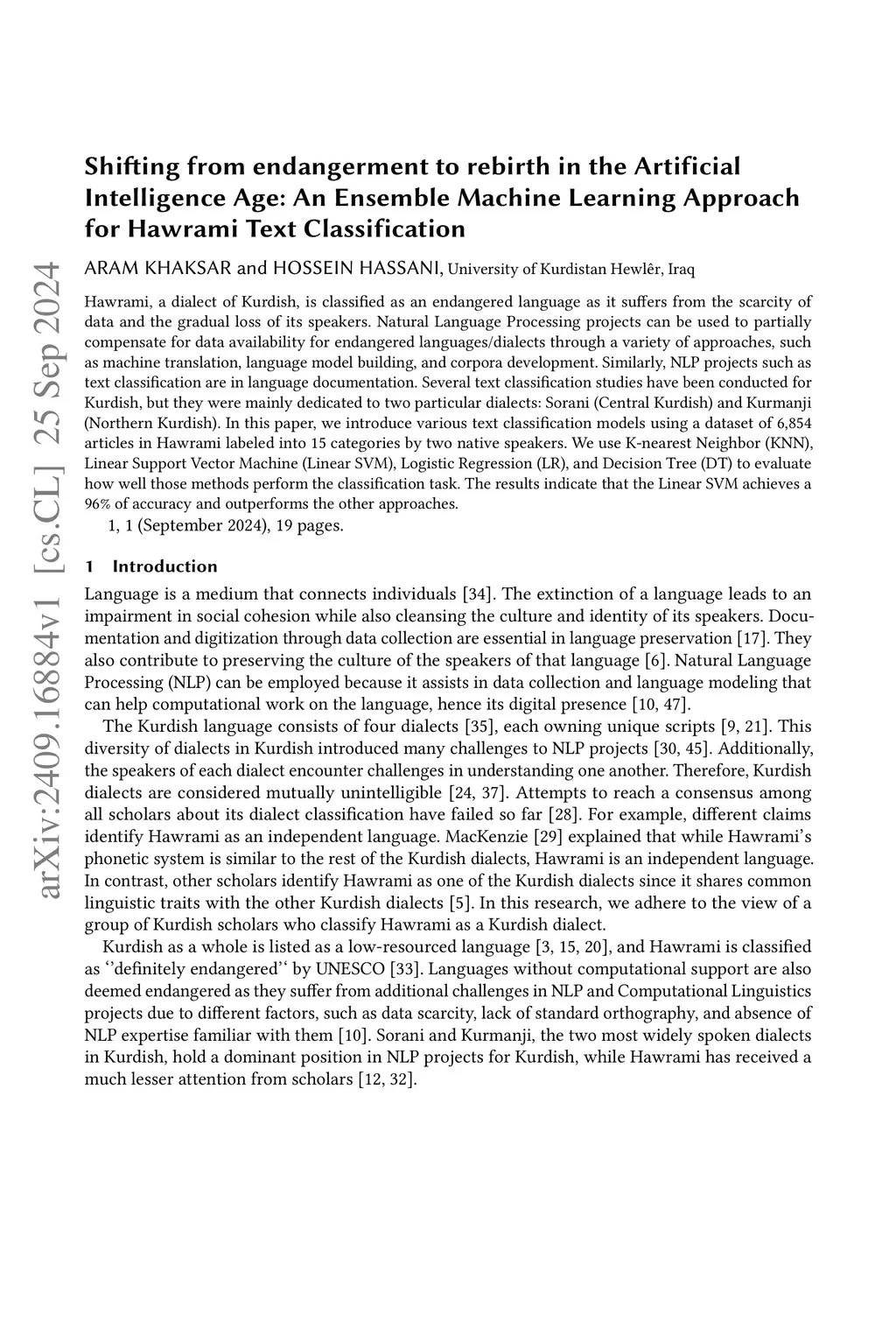 Age: An Ensemble Machine Learning Approach for Hawrami Text Classification