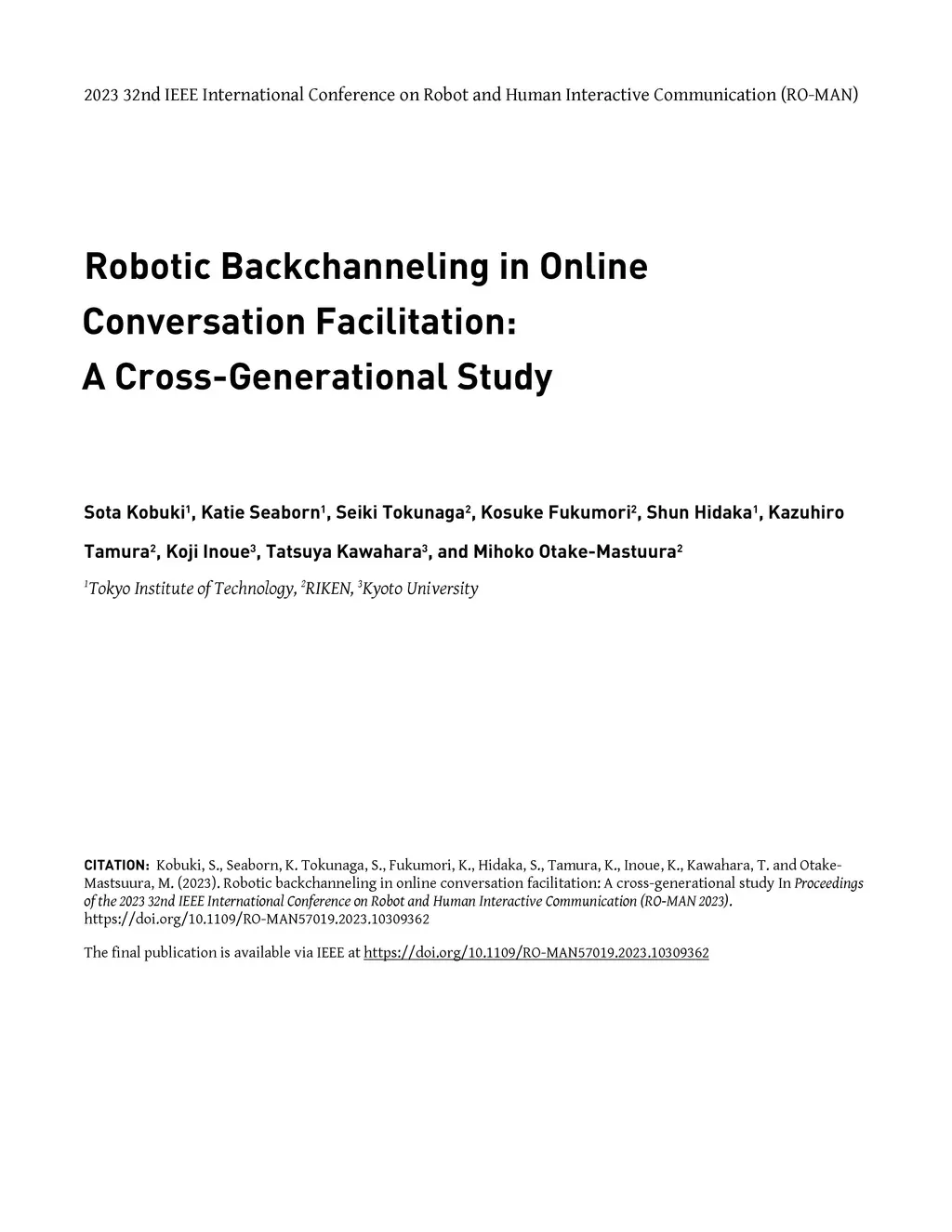 Robotic Backchanneling in Online Conversation Facilitation: A