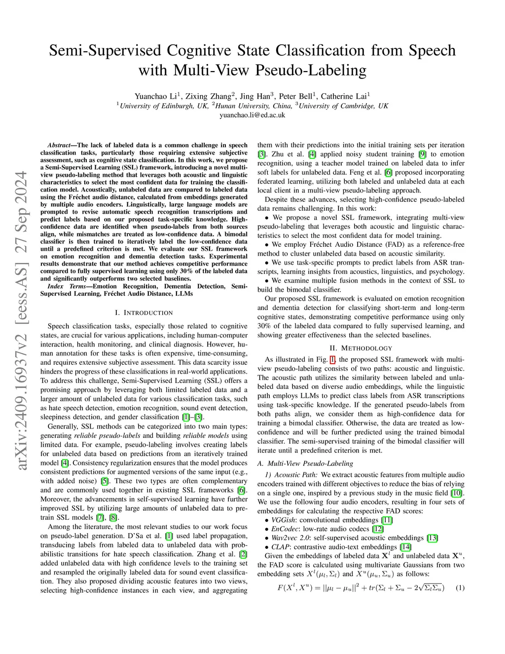 Semi-Supervised Cognitive State Classification from Speech with Multi-View Pseudo-Labeling