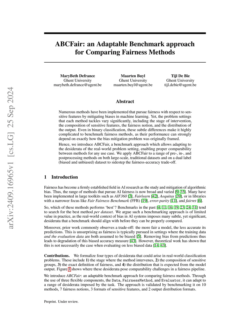 ABCFair: an Adaptable Benchmark approach for Comparing Fairness Methods
