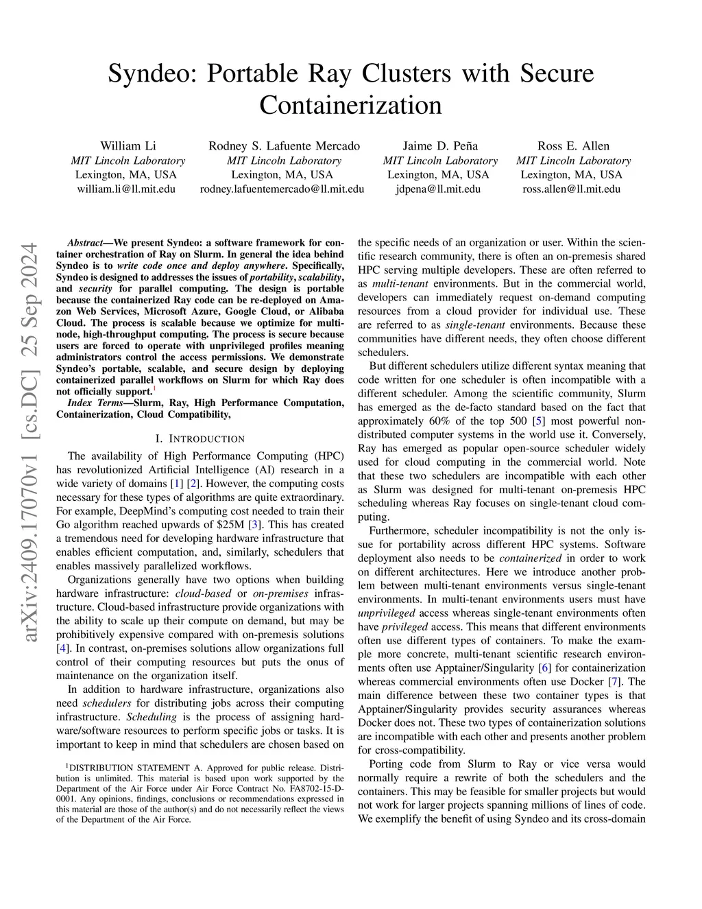 Syndeo: Portable Ray Clusters with Secure Containerization