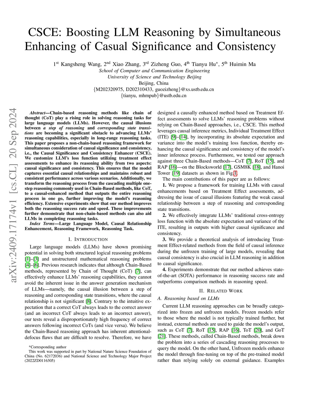 CSCE: Boosting LLM Reasoning by Simultaneous Enhancing of Causal Significance and Consistency