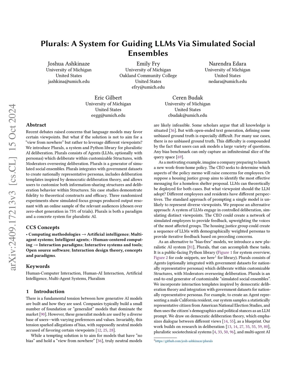 Plurals: A System for Guiding LLMs Via Simulated Social Ensembles