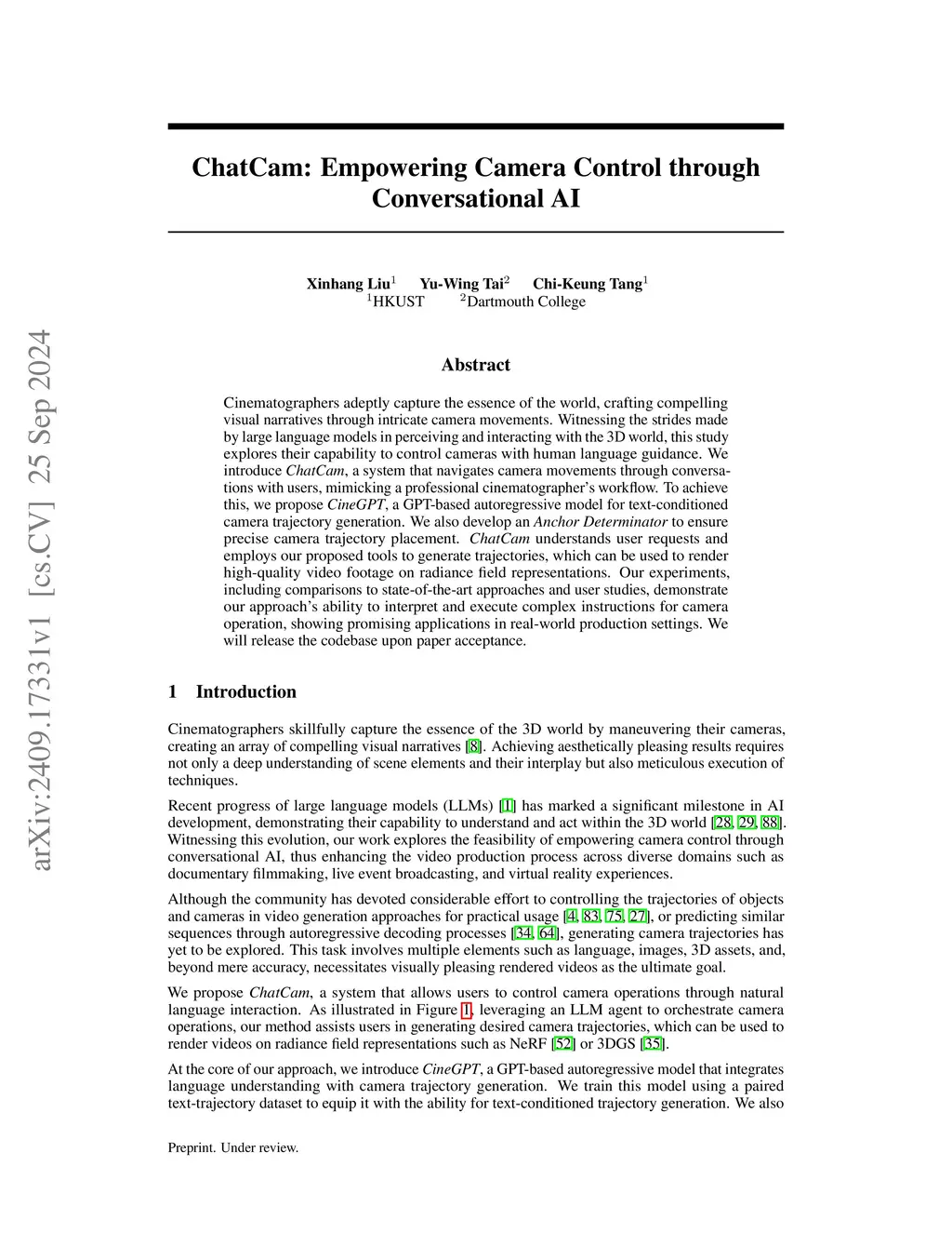 ChatCam: Empowering Camera Control through Conversational AI