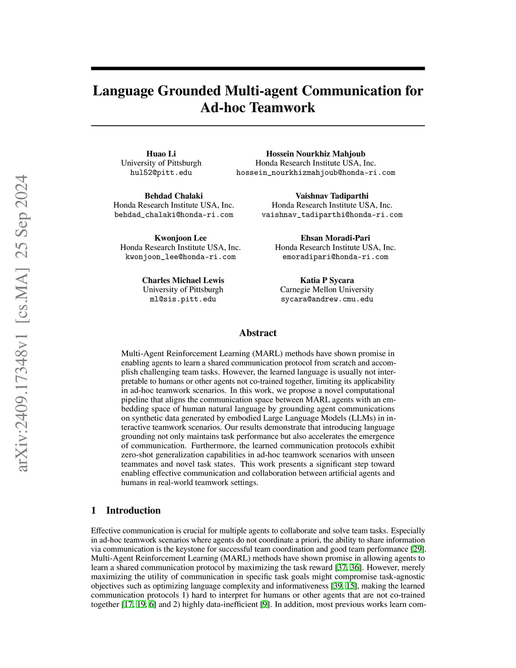 Language Grounded Multi-agent Communication for Ad-hoc Teamwork