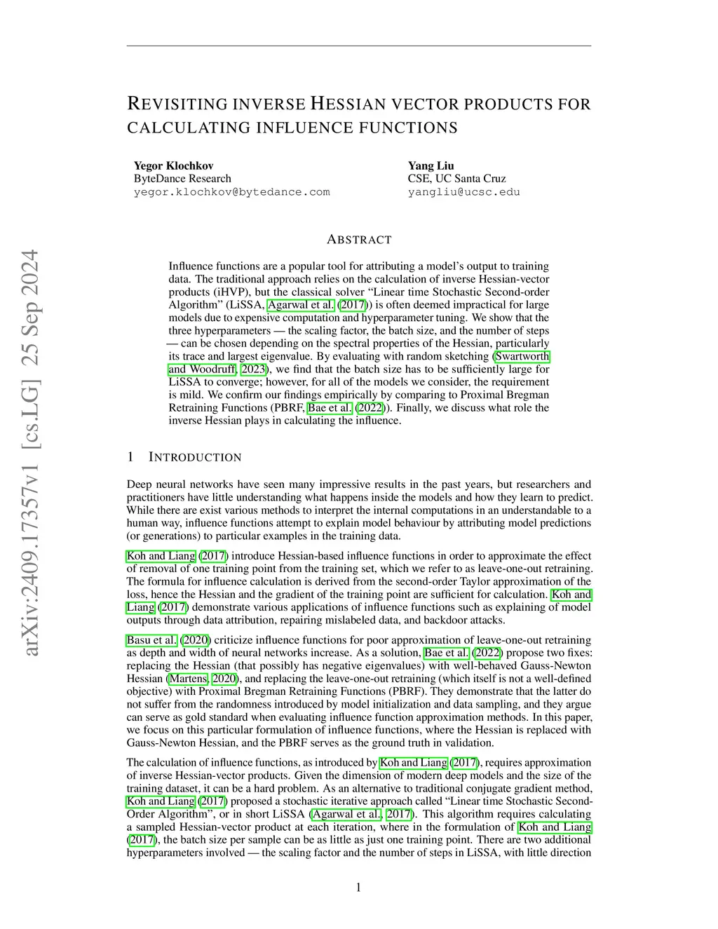 Influence functions are a popular tool for attributing a model's output to training data. The traditional approach relies on the calculation of inverse Hessian-vector products (iHVP), but the classical solver "Linear time Stochastic Second-order Algorithm" (LiSSA, Agarwal et al. (2017)) is often deemed impractical for large models due to expensive computation and hyperparameter tuning. We show that the three hyperparameters -- the scaling factor, the batch size, and the number of steps -- can be chosen depending on the spectral properties of the Hessian, particularly its trace and largest eigenvalue. By evaluating with random sketching (Swartworth and Woodruff, 2023), we find that the batch size has to be sufficiently large for LiSSA to converge; however, for all of the models we consider, the requirement is mild. We confirm our findings empirically by comparing to Proximal Bregman Retraining Functions (PBRF, Bae et al. (2022)). Finally, we discuss what role the inverse Hessian plays in calculating the influence.