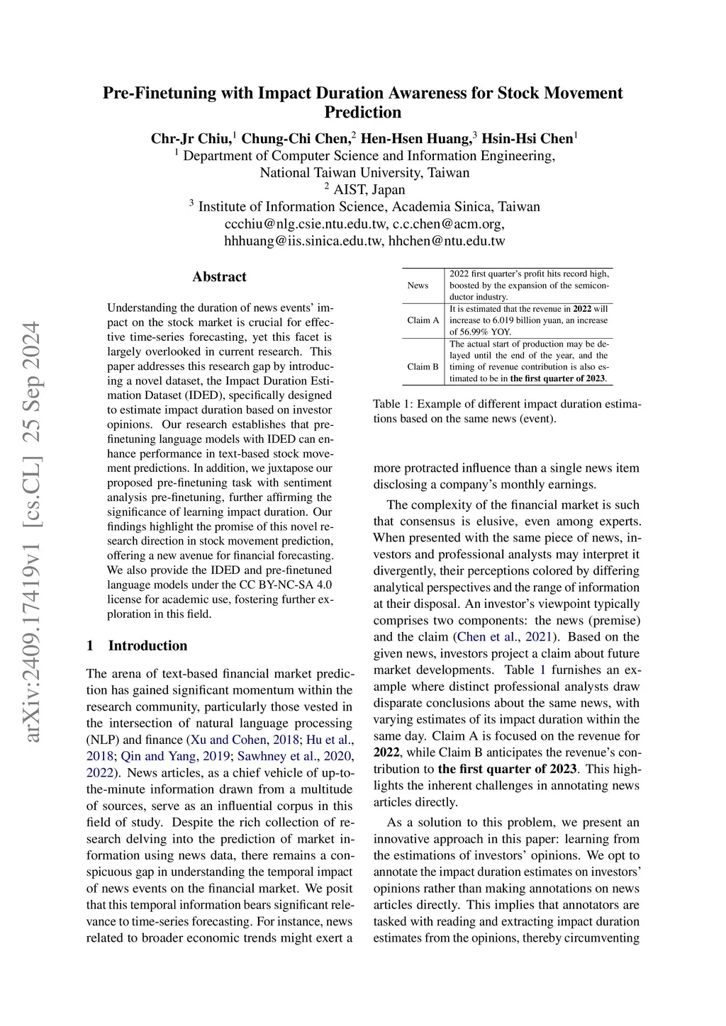 Pre-Finetuning with Impact Duration Awareness for Stock Movement