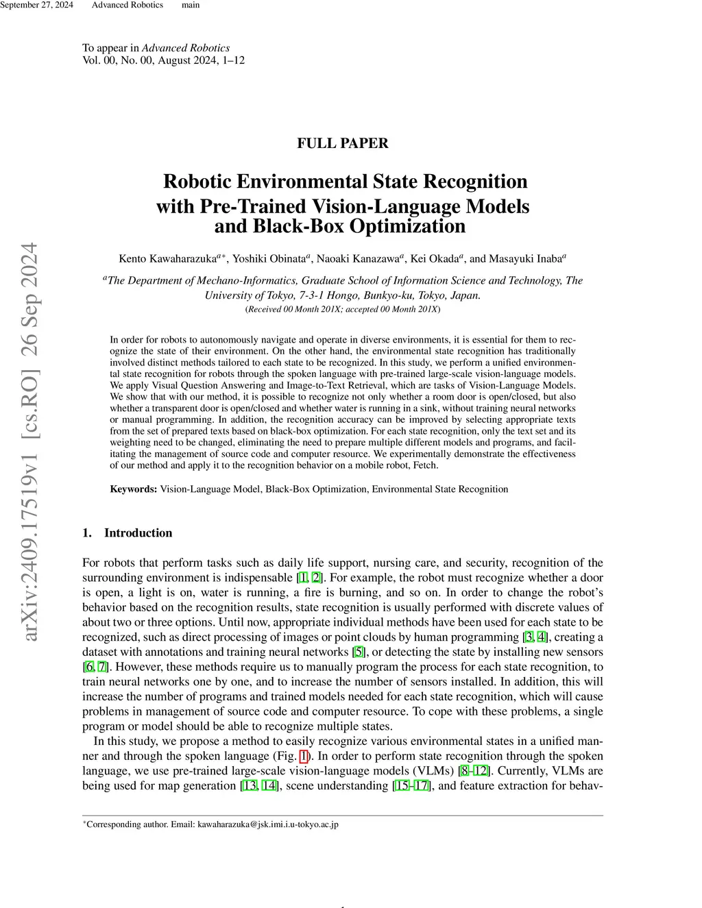 Robotic Environmental State Recognition with Pre-Trained Vision-Language