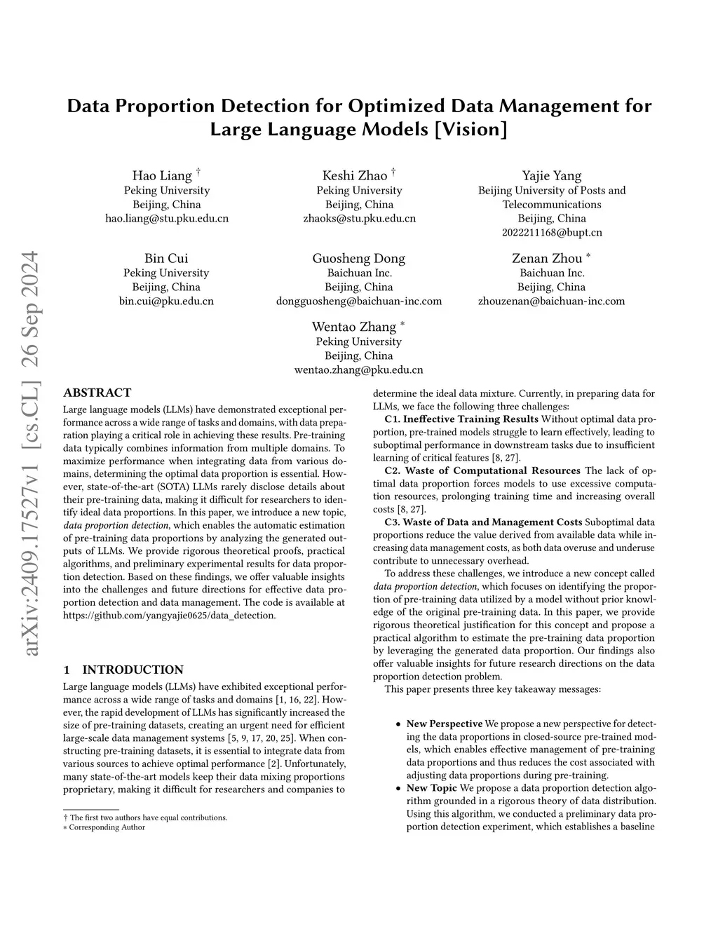 Large language models (LLMs) have demonstrated exceptional performance across a wide range of tasks and domains, with data preparation playing a critical role in achieving these results. Pre-training data typically combines information from multiple domains. To maximize performance when integrating data from various domains, determining the optimal data proportion is essential. However, state-of-the-art (SOTA) LLMs rarely disclose details about their pre-training data, making it difficult for researchers to identify ideal data proportions. In this paper, we introduce a new topic, \textit{data proportion detection}, which enables the automatic estimation of pre-training data proportions by analyzing the generated outputs of LLMs. We provide rigorous theoretical proofs, practical algorithms, and preliminary experimental results for data proportion detection. Based on these findings, we offer valuable insights into the challenges and future directions for effective data proportion detection and data management.